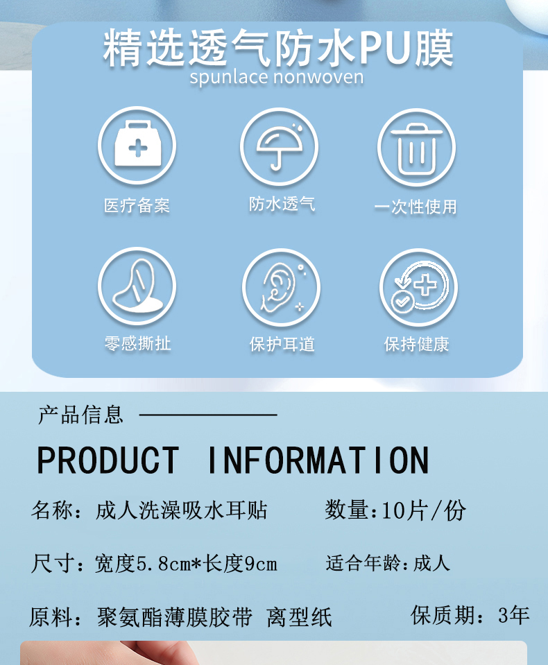 Adult Ear Pads Disposable Waterproof Ear Muffs For Bathing And Shampooing