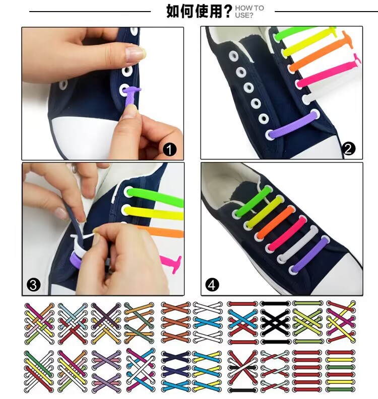 Product name; Silicone shoelaces specification; 8 lengths (16 pieces) for a set of packaging; Bag (no paper card) packaging If you need + paper card details please consult customer service or contact phone 13857966196 (wechat same number)